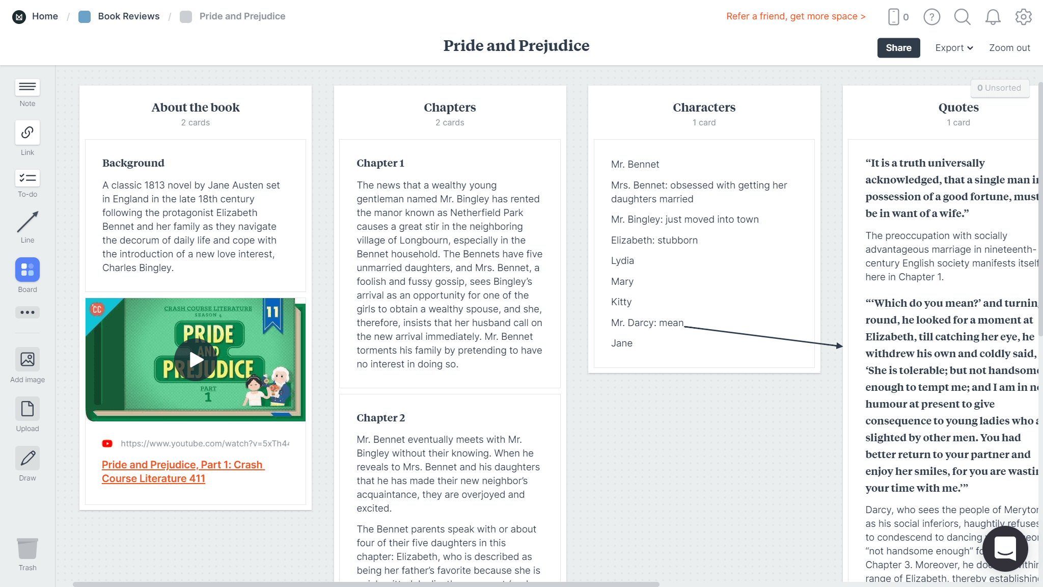 If you enjoy Milanote’s features and column-based design, with individual cards and boards that separate ideas by topic, but want something that puts more emphasis on the different connections between ideas, there are other options.