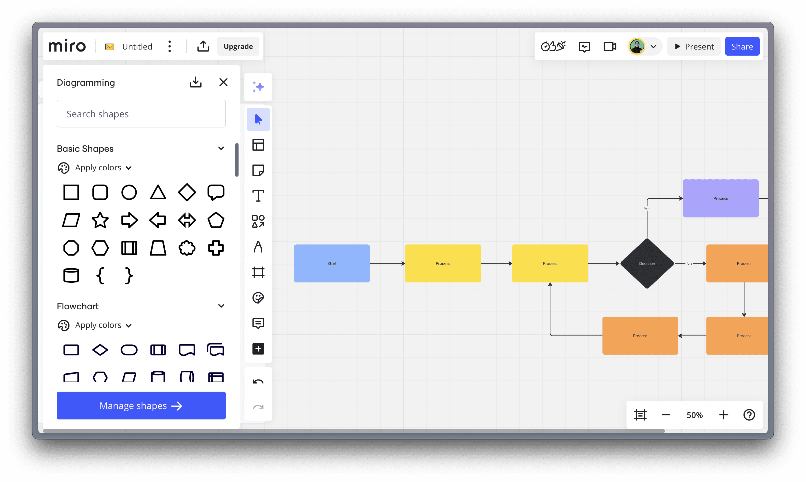 To make sure people get a head start, Miro offers a slew of templates to be easily applied to one’s workflow. That eases collaboration because team members don’t need to reinvent the wheel.